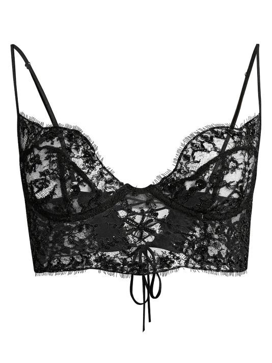 Delicate eyelash lace is trimmed with shimmering seadbeads to gives this bralette a luxurious look.