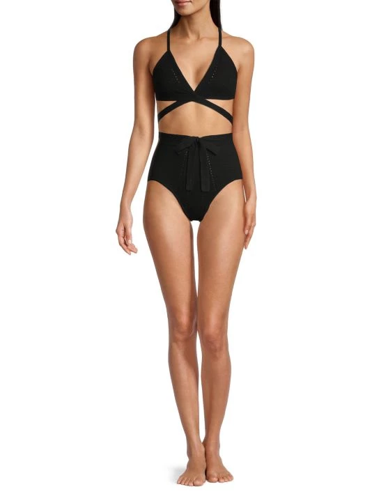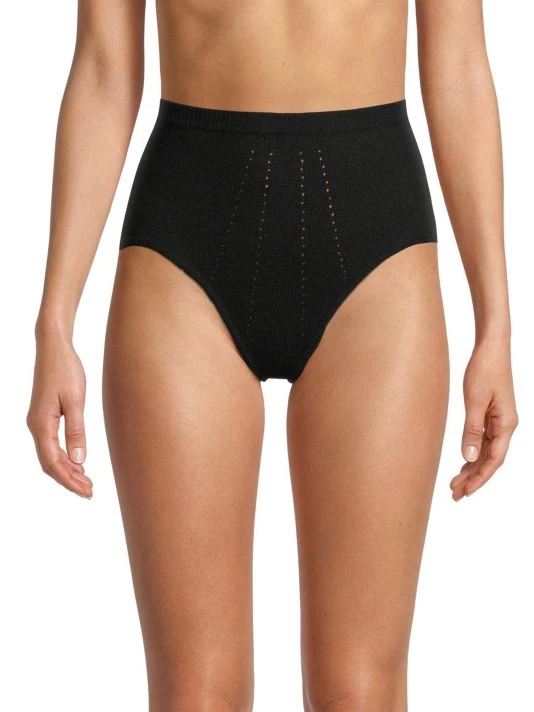 High-waisted panty enhanced by luxe cashmere fabrication, adorned with subtle pointelle-knit design.