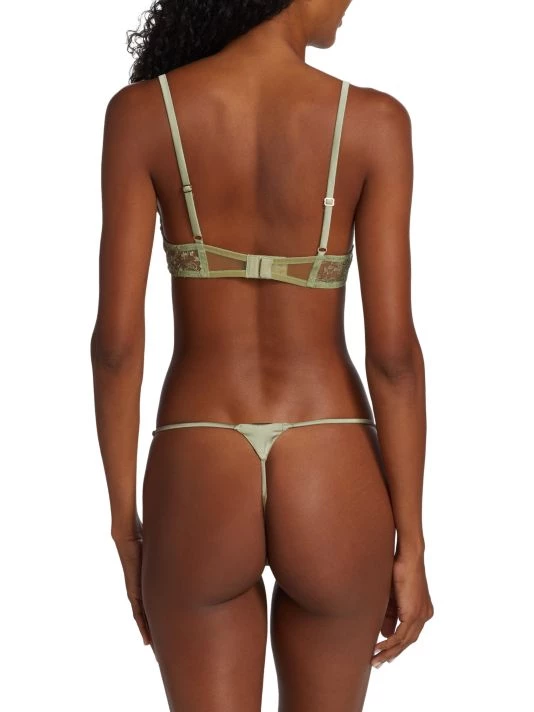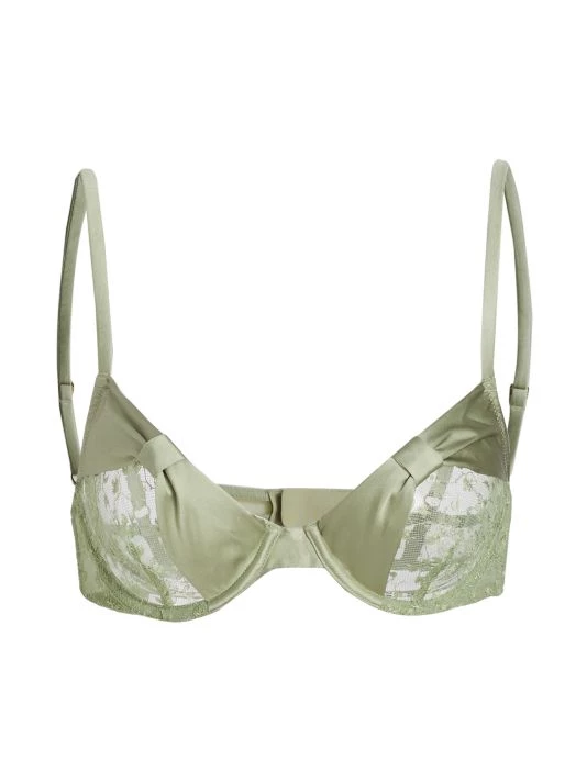 The Cecile demi bra from Kiki de Montparnasse is crafted of delicate lace with satin bow details. Adjustable straps finish this unlined, underwire style.