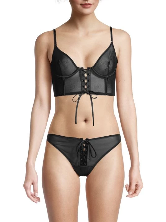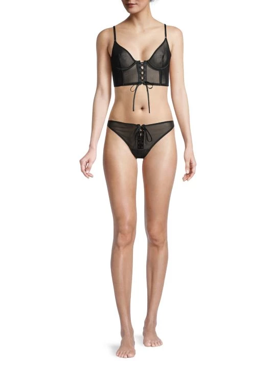 Named after the French artist and muse of the 1920s, Kiki de Montparnasse has been offering inspired luxury lingerie, ready-to-wear, and more since 2005. This underwire longline bra features a lace-up detail at the center front.