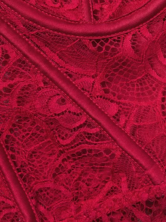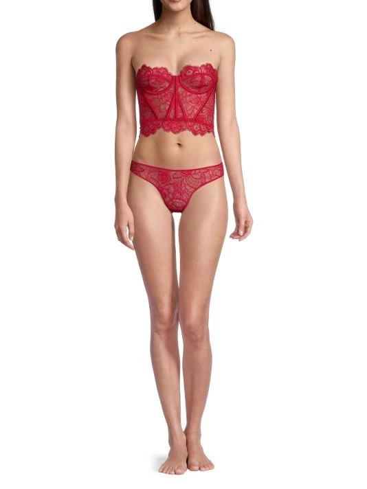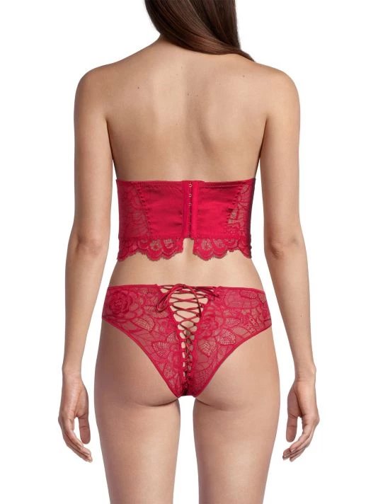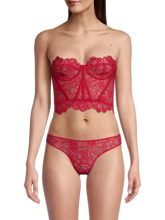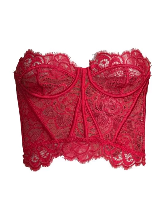 This strapless bustier is detailed with delicate lace, featuring structured boning at the front.