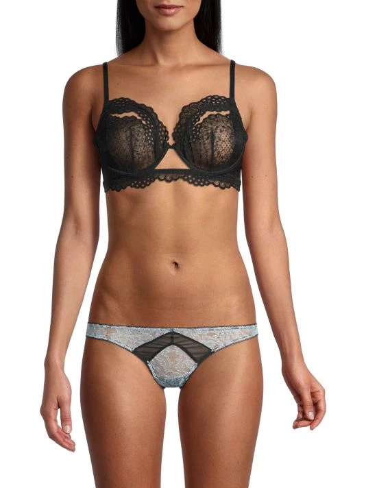 From the coupe collection. Crafted from the most exquisite and supple stretch lace, the coupe balconette bra features expertly placed cut-outs that contrast its graceful scalloped silhouette. Pair the coupe balconette bra with the matching coupe high waist thong for a coordinated look that’s equal parts sweet and sensuous.