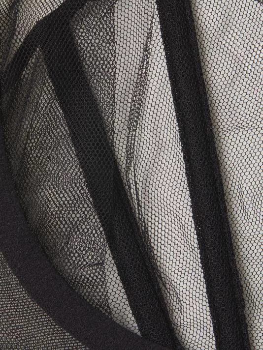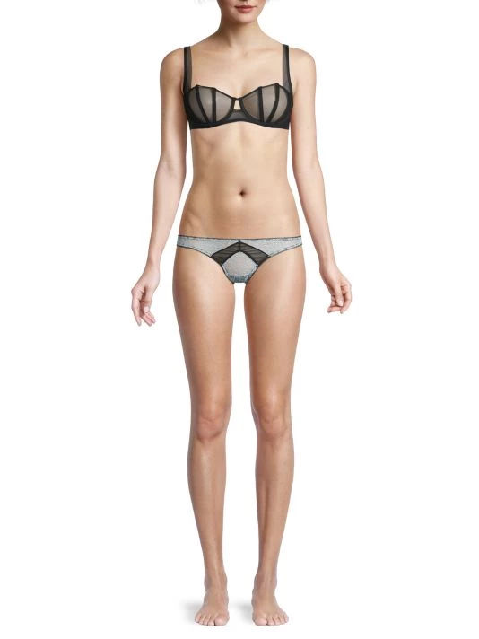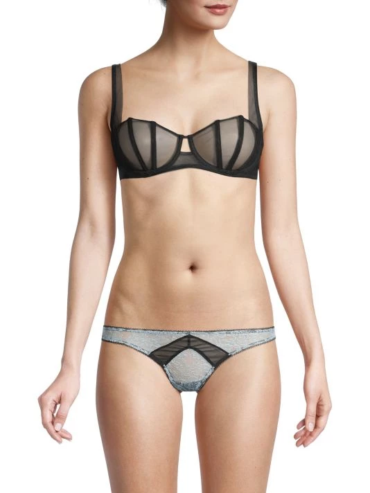 The sensuous and provocative Illusion Bra evokes Paris architecture with its angular demi-bra silhouette created with French underwire, adjustable wide straps and window-pane mesh inserts.