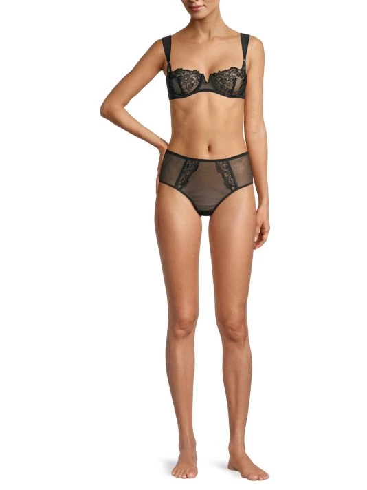 Designed with a cheeky fit, these floral lace and mesh high-waist briefs feature a rows of buttons up the back.