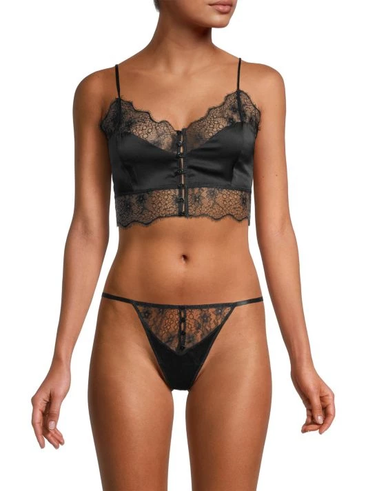 Intricate eyelash lace and luminous silk pair in this button-front camisole top.