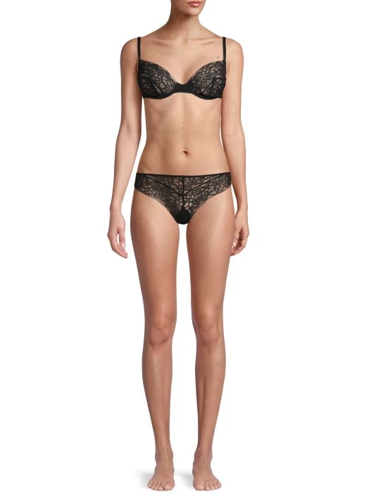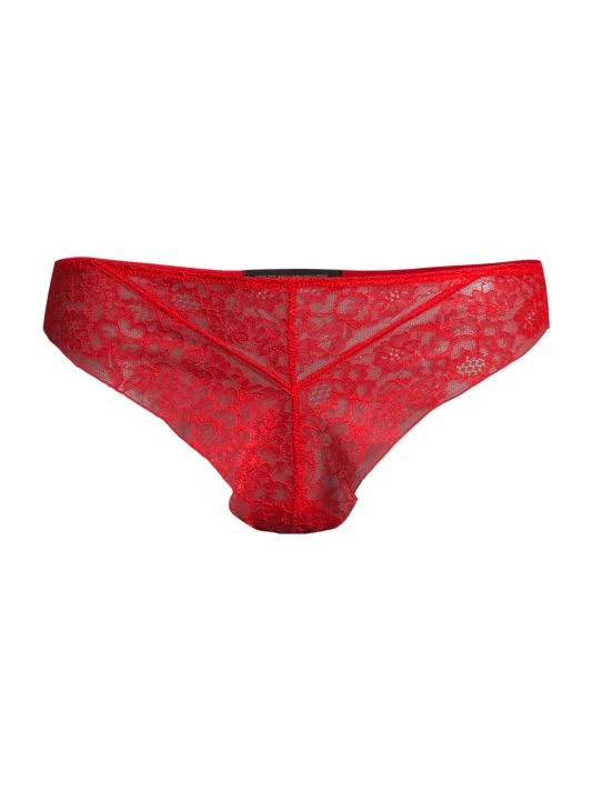 Pretty embroidered floral lace lends appeal to these supple stretch briefs.