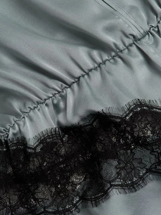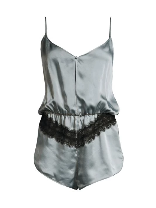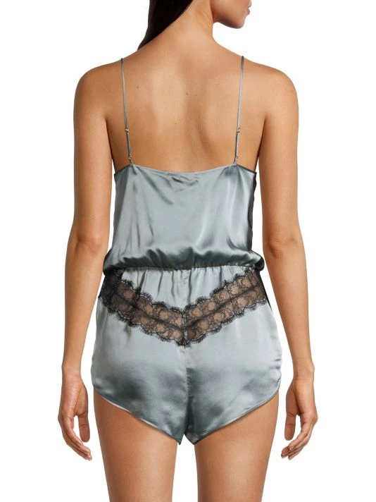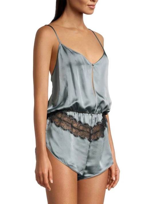 Made from sumptuous silk, this blouson romper is finished with lace trim.