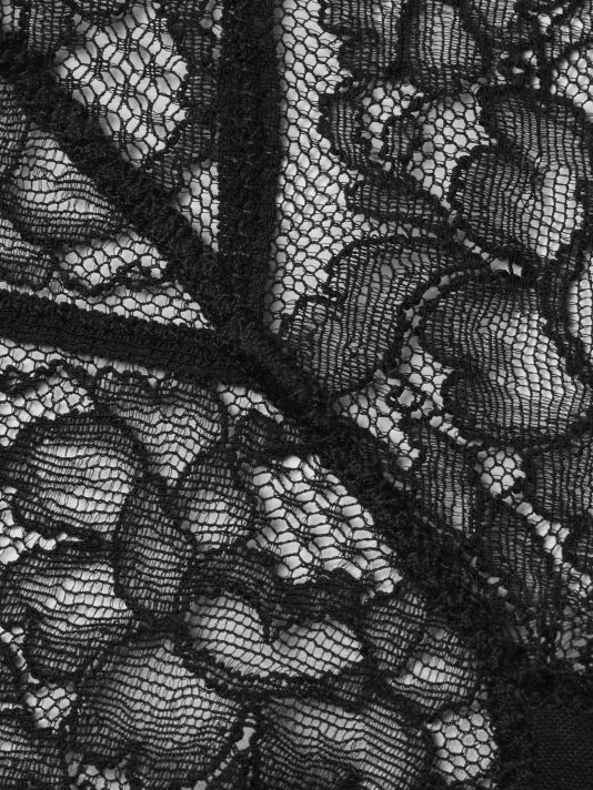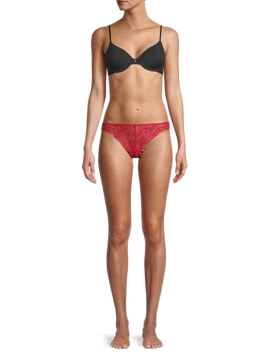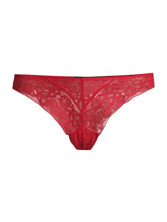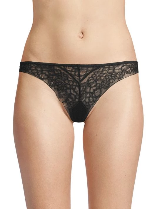 Delicate floral lace is trimmed with scalloped edges to give this thong a luxurious look.