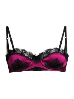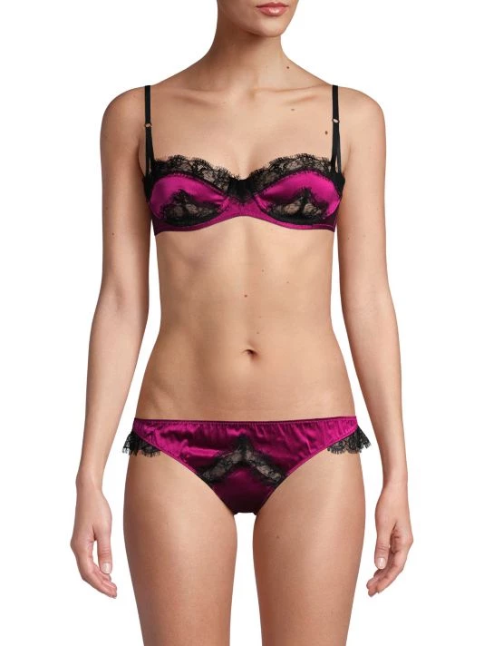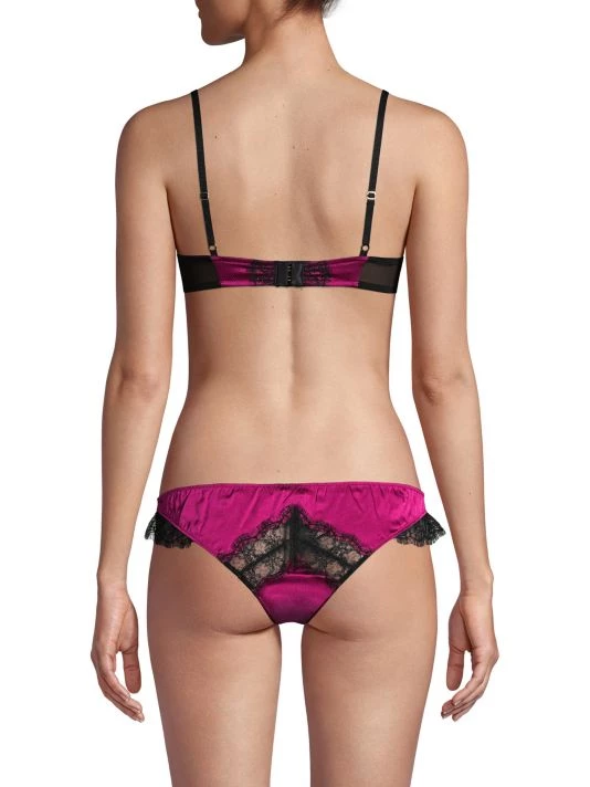 Lace Inset balconette bra is made of 100% silk. Delicate lace and mesh details give this piece an understated sophistication. The silk charmeuse straps are adjustable to ensure comfort and fit.
