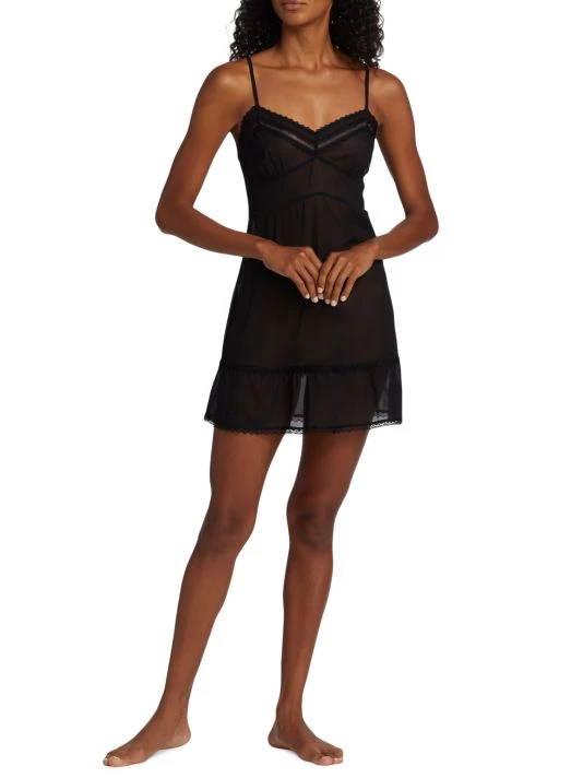 The Maiden nightie from Kiki de Montparnasse is crafted of pure sheer silk. Paneled construction and lace accents define this sultry style.