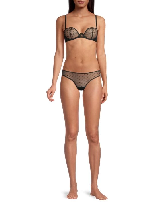 Crafted from tulle mesh with allover polka dots, this thong has a low-rise silhouette.