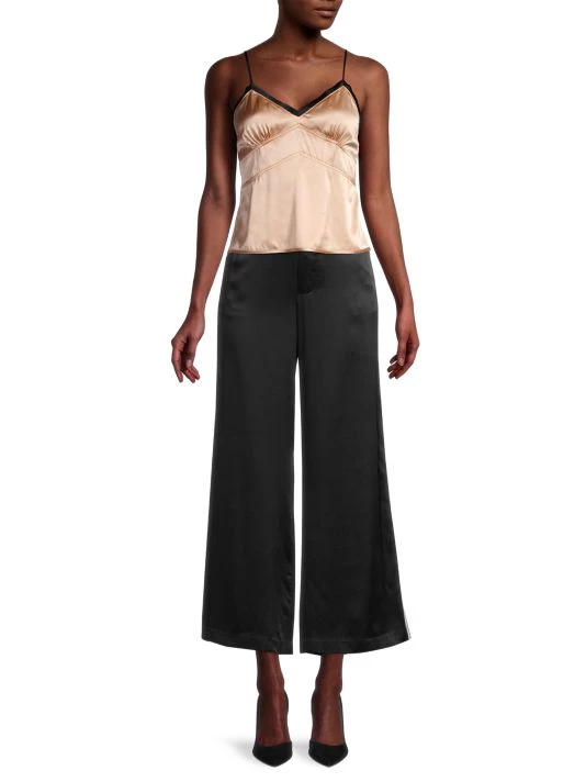 Luxe all silk camisole trimmed with bold contrasting lace.