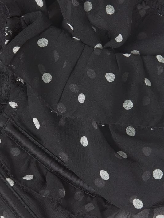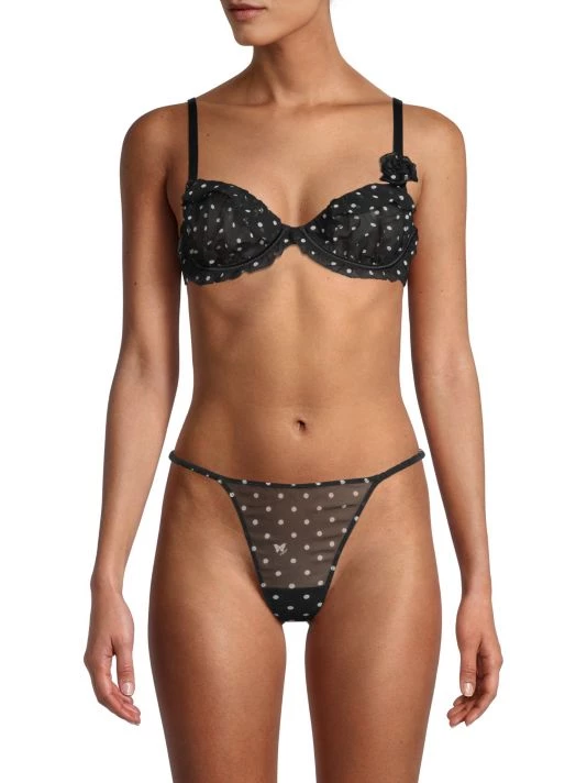 Polka dot underwire bra with a fine silk fabrication and sweet ruffle trim.