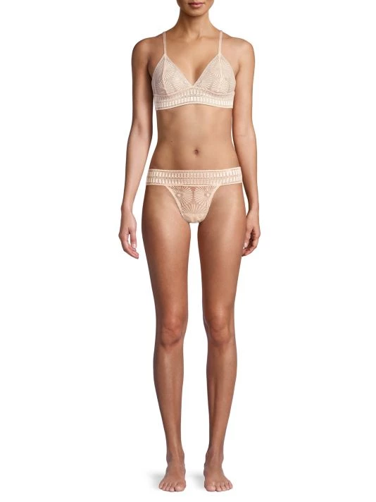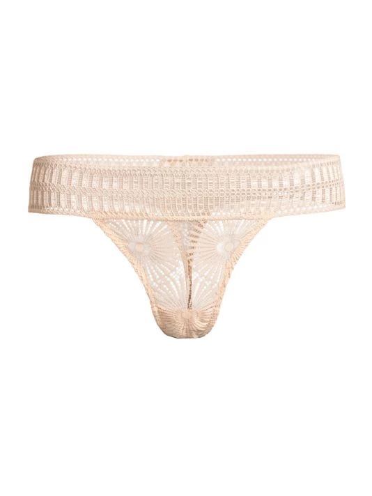 Lace eyelet details lend romance to this thong.