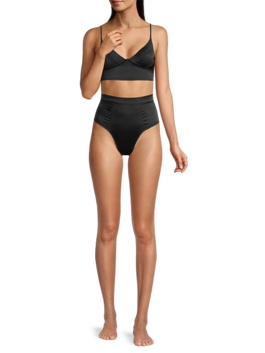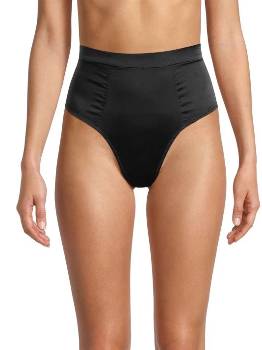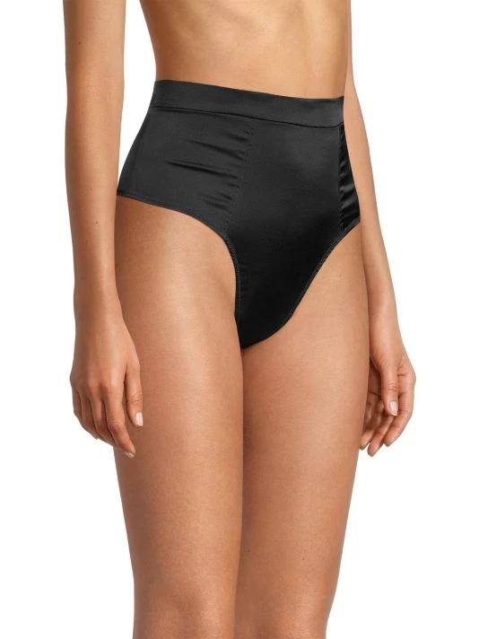 Crafted of stretch-silk, these briefs are designed in a high-waisted style with high cut legs.