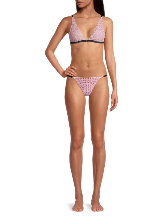Crocheted lace fronts this stretch thong.