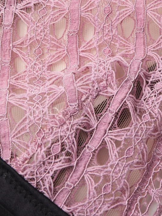 Soft plunge bra crafted in intricate crocheted lace with contrast straps.