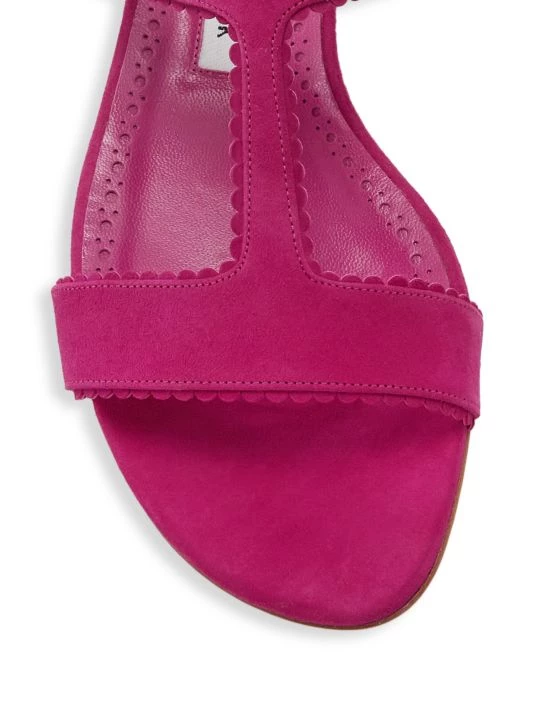 Manolo Blahnik’s Artas sandals are skillfully crafted in Italy of luscious suede. This pair is adorned with scalloped trim for a bohemian touch.