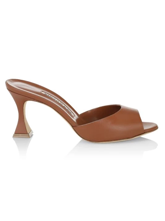 Manolo Blahnik’s Jadarona mules are crafted of smooth leather with a curved heel.