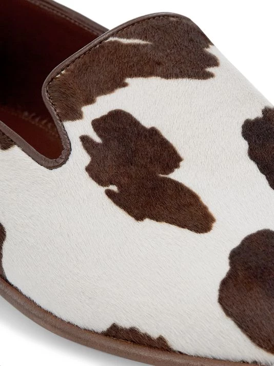 Crafted of calf hair and leather, this loafers from Manolo Blahnik feature a cow print.