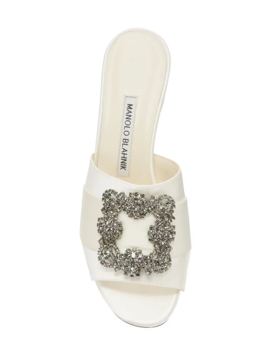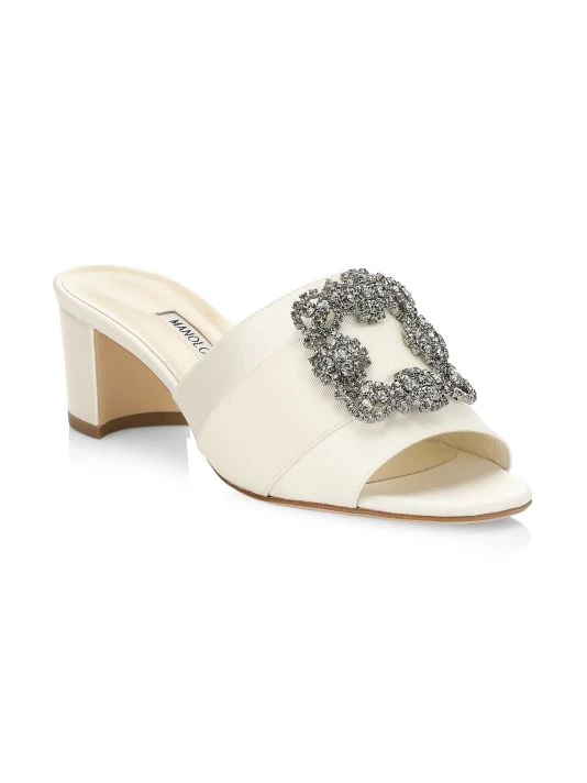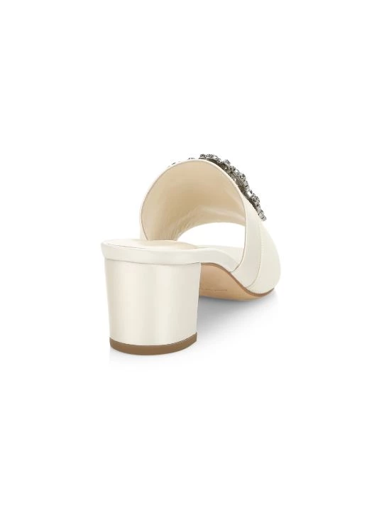 Wrapped in a luxurious silk-blend fabrication, the Martanew block heel mules feature a crystal-embellished buckle at the vamp.