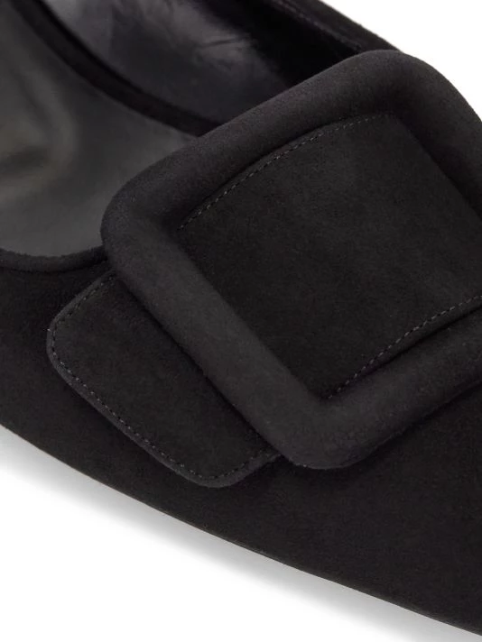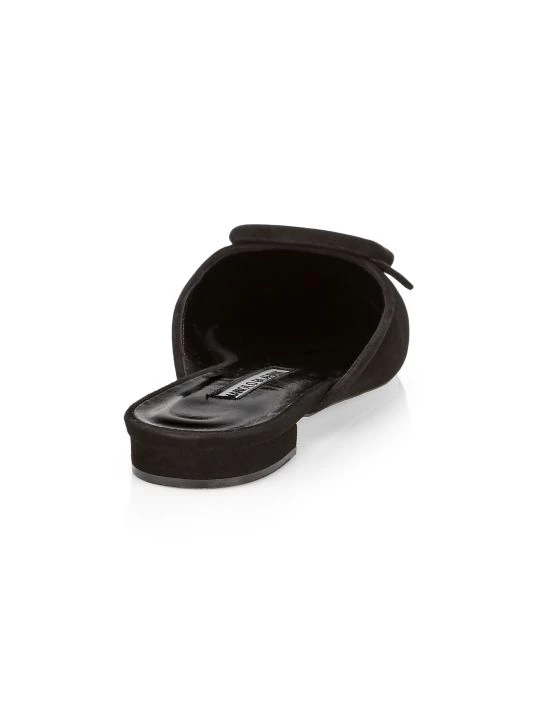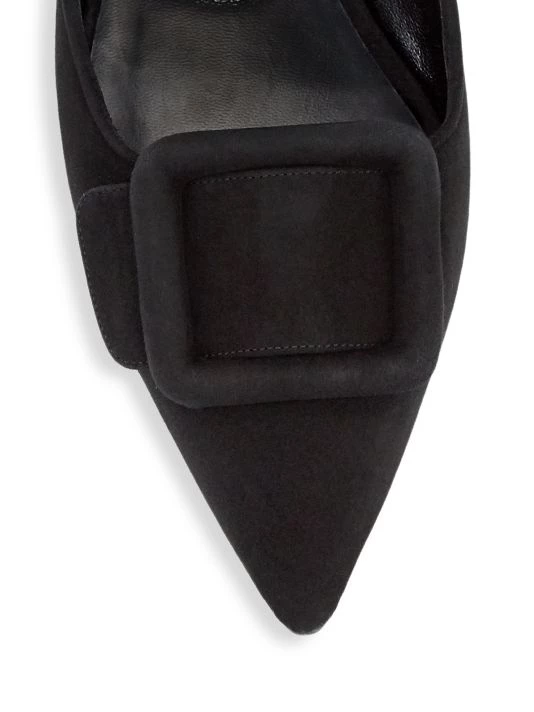 Luscious suede flats in a sleek point-toe silhouette accented with tonal buckle trim.
