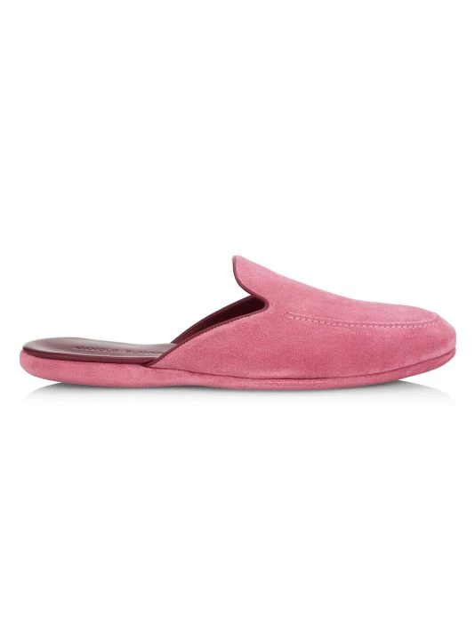 ONLY AT SAKS. Supple calf suede mule slippers with stitching detail and a calf suede heel.