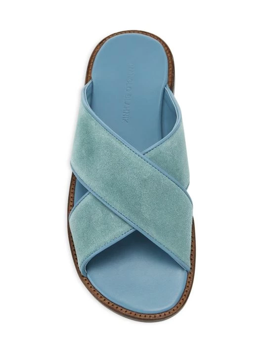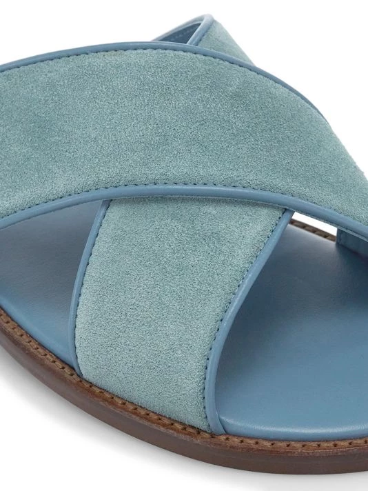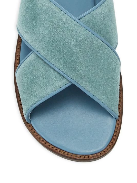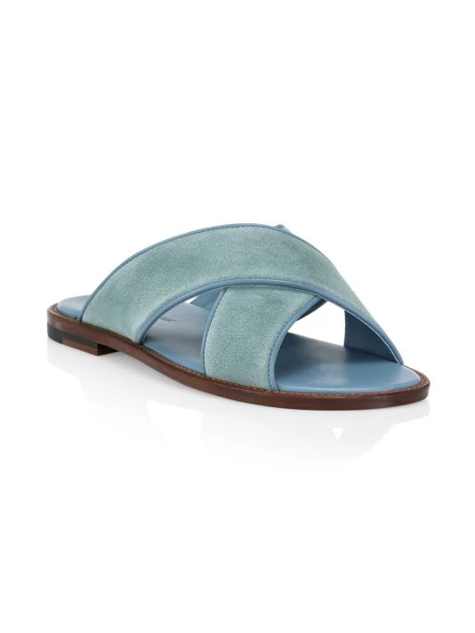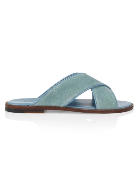 Crafted of calf suede and leather, these slides feature a crossed strap design.
